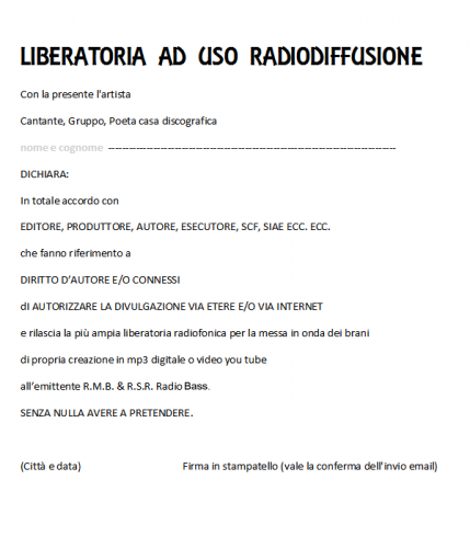 Fai il copia e incolla della Liberatoria ( Clicca Quì ^ )